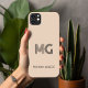 Design minimalista, nome do monograma na moda beige e capa de telefone gira inicial
