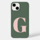Monograma Simples Personalizado, Cor-de-Rosa e Maleta Verde iPhone 14 Case-Mate