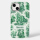 Capas de iphone elegante de monograma verde toile de jouy. Belo padrão perfeito de jouy Azul em fundo branco.impressões de Toile são uma fúria constante no momento, este é um elegante e ornamentado toile de jouy com cor damasco exótica, um estilo divertido que atualmente está se tornando atraente para decoração doméstica, roupas, móveis e Capas de ipad, convites e muito mais. O design é clássico e eterno com uma cor espantosa. Você pode alterar todas as cores e fontes do texto, clicar para personalizar ainda mais abaixo da área de personalização do texto que o levará à ferramenta design. Um presente feminino único para aniversário, feriados e qualquer ocasião especial. Seja para dia de os namorados, Natal ou como um presente em geral, faz uma ideia de presente excelente