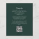 Este elegante design de convite de casamento inspirado em vintage apresenta um par de iniciais de monograma branco em letra serif aberta acima e abaixo de uma linha divisória e rodeado por uma crista de acanthus art em uma camada verde de floresta escura. O verso fornece espaço para detalhes do casamento em um fundo verde escuro sólido, junto com um código QR que os convidados podem digitalizar para visitar seu site e RSVP.