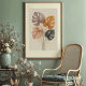 Elevem sua decoração caseira com esta impressionante impressão de arte de aquarela apresentando quatro folhas estilizadas de monstera. Profundamente num estilo delicado e translúcido, as folhas sobrepõem-se graciosamente, criando uma bela interação de matizes mudados, incluindo cinzas púrpuras moles, terracota quente, pêssego suave e cinzas de ardósia profunda. A composição botânica minimalista, com seus elegantes caules convergentes, evoca um senso de calma e sofisticação natural. Este trabalho de arte capta a forma icônica da planta monstera através de lentes etéreas contemporâneas, fazer-a como uma adição perfeita a interiores modernos, boêmicos, escandinavos ou inspirados no Japão. Sua sutil paleta de cores e formas orgânicas trazem um toque de sereno natureza e refinada elegância para qualquer espaço vivo, quarto ou escritório.