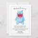 Design bonito do monstro para a festa de aniversário da festança do monstro da sua criança! Ilustração de um monstro azul com seu boca largamente aberta vestindo um chapéu do partido. O texto acima diz o "obrigado você para vir!" e o texto abaixo entra em mais detalhe que agradece ao amigo para atender ao evento e para o presente trouxeram. Você pode adicionar o nome da sua criança na parte inferior. Os textos são facilmente em linha editável.