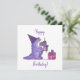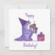 Uma mão engraçada desenhou um monstro violeta gostando de seus lanches de aniversário.