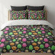 Um padrão contínuo vibrante e lúdico que apresenta uma mistura de amistosos monstros de desenho animado, sorrindo jack-o-lanternas, lípidos coloridos, doces e globos oculares. A design inclui frases divertidas de Halloween como "CREEPY CUTE!" e "FUNKY FRIGHT!", colocadas sobre um fundo escuro. Esse padrão balístico é perfeito para criar impressões tecidos, decorações de festas, papel de embrulho ou fundo digital exclusivos.