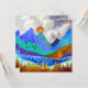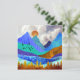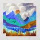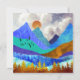 Este design esplêndido retrata uma paisagem colorido de montanha com céu nublado e colinas rolantes em texturas e cores arrojadas como azul, lacre, ciano, ouro e laranja.