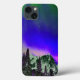 Linda cena de montanha de inverno com neve e pinheiros. Céu azul com pistas de púrpura e estrelas a sair. Esta é uma capa de telefone excelente para carregar com vocês e lembrá-los de uma noite pacífica de inverno nas montanhas.