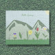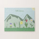 Um quebra-cabeça com um cenário de primavera: ao fundo, uma paisagem de montanhas e algumas flores de primavera em primeiro plano, incluindo Snowdrop, Daffodil, Tulip, Wild Pansy, Lily do Vale e Daisy em tons pastéis. Perfeito para um presente para um amante da natureza. O texto é personalizável.