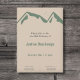 Um convite de aniversário marrom claro com montanhas de cor verde e cinzas e textos verdes personalizáveis: perfeito para organizar uma festa de aniversário para um amigo ou membro da sua família! Você pode mudar a mensagem para usá-la para uma aposentadoria, um casamento, um chá de fraldas ou qualquer festa que você esteja organizada!