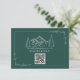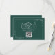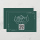 RSVP de Casamento com montanhas e ilustração verde com fronteira botânica. O fundo é a cor esmeralda. Personalize o texto e o código QR.