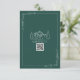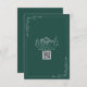 RSVP de Casamento com montanhas e ilustração verde com fronteira botânica. O fundo é esmeralda. Personalize o texto e o código QR.
