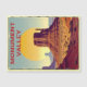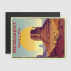 Carte postale vintage magnétique représentant Monument Valley dans les états de l'Utah et de l'Arizona aux Etats Unis. Il est remarquable par ses formations géomorphologiques composées notamment de mesas et buttes-témoins. Le site fait partie d'une réserve des Navajos et du plateau du Colorado.