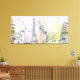 Monumentos da canvas mundial, com o Grande Ben, o Arco do Triunfo, o Cristo O Redemer, a Torre Eiffel, a Estátua da Liberdade, o Coliseu e a Torre de Pisa.