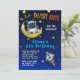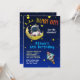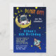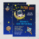 O Convite de aniversário Moon Adventure apresenta texto dizendo, 3,2,1— Explosão! Tem um astronauta personalizável posando com uma lua crescente. Em seguida, há um lugar para colocar o nome da criança. Uma nave de foguete se acelera no fundo. Tudo contra um céu estrelado. O verso do convite tem muitas ilustrações espaciais legal. Aprecie seu pequeno astronauta com uma festa de aniversário de aventura na lua.