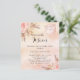 Para um chá de fraldas moderno estilo boho. Um fundo rosa dourado, rosado, rosado e roxo, com aspecto metálico. Decorado com ouro rosa e florais cor-de-rosa, rosas, grama pampas e uma lua sorridente feliz. Personalize e adicione um nome e detalhes da parte.
