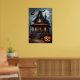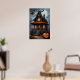 Desvendar o espírito do Dia das Bruxas com uma poster cativante. Uma casa de madeira manchada toma palco central, envolta em um ambiente estranho. A lua brilhante lança um brilho encantador, enquanto os morcegos dançam ao redor do seu telhado. As bombas entrelaçadas alinham a frente, adicionando um toque de susto caprichoso. Este trabalho de arte digital captura a essência do Halloween num estilo clássico, mas eletrizante.