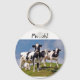 Esta chaveiro divertida mostra um grupo de vacas jovens de Holstein em cima de uma colina. A foto foi tirada nas ilhas dos Açores, Portugal.