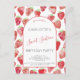 Bonita e moderna coloração d'água morango doce 16 convite de aniversário de menina. Personalize o texto para se adequar à sua celebração. Arte original de Nic Squirrell