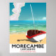 Morecambe, poster de viagens britânico de Lancashire, de um velho barco de madeira na praia arenosa durante um agradável dia quente.