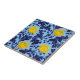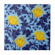 Grande azulejo cerâmico numa vintagem William Morris cor damasco floral de flores e folhas anêmonas, melhorada digitalmente e colorida - folhas marinhos / azuis-indigo, com flores em tons de amarelo-mostarda, sobre fundo azul-claro