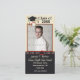 Design de graduação para ele apresenta um boné preto de Mortar, Diploma amarrado por fita, estrelas de ouro e galerias com data de 2018. Áreas de texto e fotos estão prontas para você personalizar.