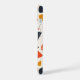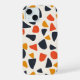 Este trabalho de arte apresenta um padrão lúdico e abstrato composto por formas irregulares, semelhantes a seixos espalhadas sobre um fundo creme. O design usa uma paleta colorida quente e inspirada por retrorreflectores de marinho profundo, laranja queimado e amarelo-mostarda. As formas variam de tamanho e orientação, criando um arranjo dinâmico e espontâneo que evita senso de movimento e energia. A simplicidade das formas, combinada com as cores ousadas, dá ao padrão uma sensação moderna do século médio, reminiscente dos têxteis antigos e da design.