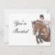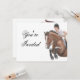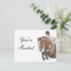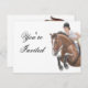 design original de um cavalo e de um cavaleiro pela designer Carolyn McFann do Two Purring Cats Studio sobre convites de festas de qualidade e personalizáveis e mais para equestres e fãs equinos.