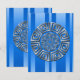 Círculo grego Motif Disc Quatro Círculos um design de arte digital antigo-moderno, uma camada chic prateada com padrão repetido em quatro círculos. Além disso, fundo de gradiente azul com faixas.