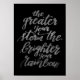 Poster inspirador com a elegante representação caligráfica da citação elevatória: "quanto maior a sua tempestade, mais brilhante o seu arco-íris." Esta peça maravilhosamente trabalhada não só serve como um elemento de decoração na moda, como também oferece um lembrete poderoso de que os desafios podem levar a resultados mais brilhantes e mais vibrantes. Elevem o vosso espaço com esta poster motivacional, onde a arte das palavras encontra a arte da resiliência. Perfeito para adicionar uma boa vibração a qualquer espaço. Descubra nossa coleção de posters motivacionais com citações inspiradoras para ele e para ela e mais. Elevem sua decoração com esta poster que exude positividade e motivação.