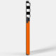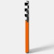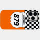 Esta capa de telefone de motocross personalizada tem um gráfico de placa de número branco que está pronto para ser personalizado com seu nome e número de bicicleta. A placa do número é definida sobre um fundo laranja com uma borda de sinalizador de verificação em preto e branco.