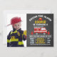 Este belo convite de aniversário de fotos do quadro-negro apresenta um caminhão ou motor de incêndio, um chapéu de bombeiro e dois hidrantes de incêndio num fundo de quadro-negro digitalizado. O mesmo convite de design de aniversário também está disponível sem uma fotografia. Para mais modelos de convite para caminhoneiros, visite a loja. O motor de tiro fotográfico ou o convite de aniversário do caminhão de bombeiros deste rapaz está pronto para ser personalizado.