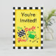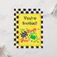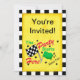 Este convite é grande para um partido de competência, a reunião ou o outro evento de competência do motor. O convite tem uma beira checkered preto e branco e as palavras customizáveis "você é convidado!". A imagem gráfica inclui as palavras "que o partido começa aqui" e "nenhum fã de 1 raça" com uma bandeira checkered preto e branco e uma bandeira verde. O outro lado do convite tem os campos a personalizar para seu evento. Duas bandeiras checkered preto e branco são caracterizadas neste lado junto com a mesma beira checkered preto e branco. O fundo em cada lado do convite é amarelo textured. Personalize inteiramente para personalizar para seu evento.