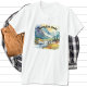 Camping or hiking themed T-Shirt with inspirational slogan "Leave the roads, take the trails", which can be edited to your own words. Printed with an image of a serene watercolor mountain vista. See more in this collection at Camp_and_Cottage on Zazzle.