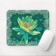 Mouse pad com um designer Water Lily em verde-caçador com turquesa e lírio-amarelo cercado por flores e renda suja. Bonito e colorido para iluminar seu escritório ou casa. Obrigados para o Hungryjpeg e os Scraps de uso comercial para alguns dos elementos do design.