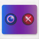 Um mouse pad colorido, com botões de voto azuis e vermelhos, dedo tac