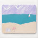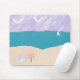 Este mouse pad foi projetado com a minha representação de um guarda-chuva e cadeira em uma praia ao lado de um oceano turquesa.