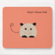 Mouse pad com mouse ilustrado e bonito e um lugar para colocar seu nome. O nome pode ser alterado no pad. O fundo é laranja, e o mouse é bronzeado e preto.
