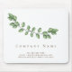 Mouse Pad de Nome de Empresa Folha Elegante. Alcance um toque de elegância minimalista para a sua mesa ou como um promocional dotado de um galho graciosamente descendente de folhas de eucalipto do lado superior direito, complementado pelos detalhes de sua empresa abaixo. Para uma abordagem mais personalizada, sinta-se à vontade para personalizar o texto e explore a opção Clique para Personalizar mais para modificar estilos de fonte e cores de acordo com suas preferências.
