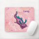 Mouse Pad para criança com dragão ilustrado, fundo rosa com bolinhas e corações. O nome pode ser alterado ou removido. Obrigados para a Creative Fabrica para alguns dos elementos na design.
