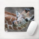 Girafa que cola sua língua para fora e que lambe seu nariz.