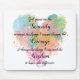 Crie um presente consciente para si mesmo ou para outro com este design de texto de oração da Serenidade num tapete de rato. Criada em tipografia elegante escrita sobreposta em um coração do estilo de aquarela digital abstrato pastel.