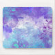 Mousepad com desenho abstrato da paisagem sonhosa cósmica de cores lavandas, roxas e lacas.