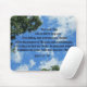 Lindo céu azul com nuvens fofinhas e ramos verdes de árvores em primeiro plano, com Bíblia Verso de bendição: Agora a Ele que é capaz de evitar que caia, e de vos apresentar impecáveis antes da presença de Sua glória com alegria superficial, ao único Deus sábio nosso Salvador, seja glória e majestade, domínio e poder, agora e sempre. Amém. 01:24-25 de junho