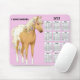 Esta design tem uma Appaloosa em um fundo lilático. As palavras "Eu Amo Cavalos" estão sobre o cavalo. Um calendário de 2025 é à direita do cavalo. Peguem este botão do rato para o amante do cavalo na vossa vida.