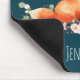 Um mouse pad com um desenho de 2 raposas vermelhas. Um de pé no outro deitado. Desenhado com aquarela.