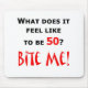 Que sente como para ser 50? Morda-me! Design cómico para as pessoas de 50 anos que não estão felizes sobre o giro de 50 e um sinal de aviso para outro. Faz um grande 50th presente de aniversário.