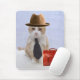 Bubba em um colar, em um laço e em um chapéu com uma pasta. Este mousepad cómico pode ser personalizado.