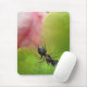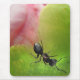 Este mousepad apresenta uma relação simbiótica clássica. Uma formiga pequenina está rastejando em uma ervilha para pegar a doce seiva pegajosa. Acredita-se que essa atividade faça com que a planta se abra em uma linda flor rosa. Esta visão de um mundo muito pequeno é exibida como um abstrato adorável em rosa, verde e preto.
