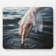 Uma mão delicada, enfeitada com rendas, mergulha suavemente um dedo em água escura criando sutis ondulações de água