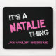 É uma coisa da Natalie que você não entenderia - tipografia de primeiro nome em letras rosa-vivas brilhantes em pincéis pintados e letras angustiadas no estilo do grafite de stencil.