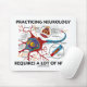 Os neurologistas apreciarão o humor anatômico irónico com este mousepad que caracteriza um neurônio/sinapse, completos com o tudo etiquetas anatômicas da chave, junto com o provérbio "neurologia praticando exigem muito nervo". Mousepad memorável para algum neurologista, cirurgião, ou qualquer um que trabalhar com nervos!
